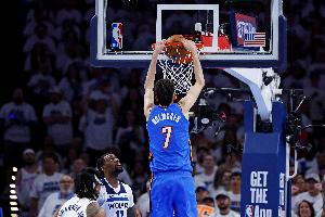 體育資訊5月29日訊 NBA季后賽,雷霆124-94大勝森林狼,總比分4-1挺進(jìn)總決賽。