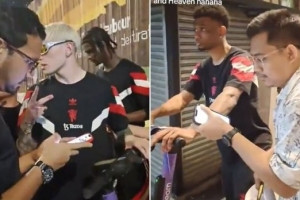 根據(jù)最初發(fā)布在TikTok上的視頻顯示,一位當(dāng)?shù)鼐用癫坏貌粠椭數(shù)潞退那蛐峭橥瓿芍Ц?,這位前鋒將手機(jī)遞給一名粉絲時(shí),其他人正忙著與加納喬和海文自拍。