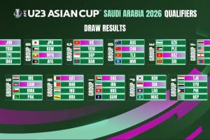 本次預(yù)選賽共分為11個(gè)小組,各小組第一名和4個(gè)成績(jī)最好的小組第二名,將晉級(jí)明年在沙特阿拉伯進(jìn)行的U23亞洲杯決賽階段比賽。