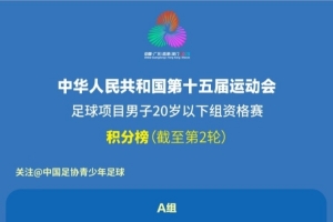 中華人民共和國第十五屆運(yùn)動(dòng)會(huì)足球項(xiàng)目 男子20歲以下組資格賽積分榜(截至第2輪) ???