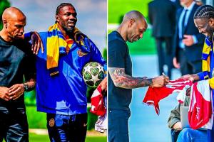 值得一提的是,媒體拍到小圖拉姆還讓亨利在一件阿森納的球衣上為他簽名。