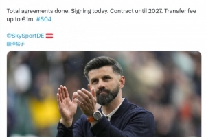 普萊滕伯格透露,沙爾克已經(jīng)與普利茅斯主帥穆斯利奇就執(zhí)教事宜達(dá)成全面協(xié)議,雙方將在今天簽下期限到2027年的合同,沙爾克將向普利茅斯支付補(bǔ)償金,最高可達(dá)100萬歐元。