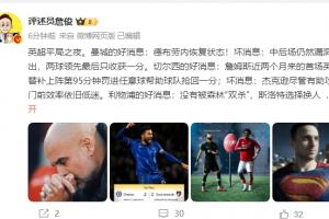 體育資訊01月15日訊 本輪英超,利物浦1-1森林,曼城2-2布倫特福德,切爾西2-2伯恩茅斯。賽后,評(píng)述員詹俊發(fā)文點(diǎn)評(píng)。