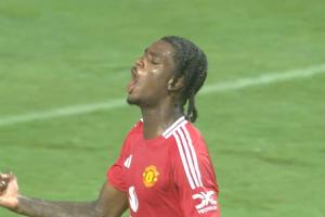 體育資訊05月30日訊 友誼賽曼聯(lián)vs中國香港最后時刻,阿瑪?shù)聜髦校N念^球破門,曼聯(lián)將比分鎖定為3-1!