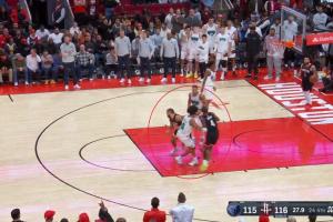 第四節(jié)27.9秒,狄龍沖向威爾斯制造身體接觸,將威爾斯從他的防守位置擠開(kāi),這是一次漏判,應(yīng)吹進(jìn)攻犯規(guī),球權(quán)應(yīng)該歸屬灰熊(此時(shí)灰熊115-116落后)。