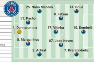 前鋒:7-克瓦拉茨赫利亞、10-登貝萊、14-杜埃