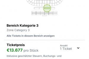 從圖片報(bào)提供的內(nèi)容可見,一張球票的價(jià)格高達(dá)1.36萬(wàn)歐。