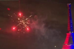 據(jù)法國媒體la chaine L'équipe報道,為慶祝球隊奪冠,巴黎球迷在埃菲爾鐵塔周圍燃放煙花,氣氛非常熱烈。