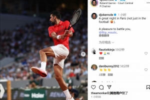 體育資訊6月1日訊 不久前,德約科維奇3-0擊敗米索利奇晉級(jí)法網(wǎng)16強(qiáng),他在社交媒體上慶祝時(shí)提到了巴黎奪得歐冠冠軍。