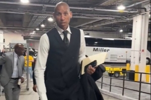賽前步行者名宿雷吉-米勒身穿正裝到場,他對著鏡頭表示:“我今天穿了一身黑,懂的都懂?!?/p>