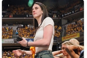 WNBA印第安納狂熱明星凱特琳-克拉克來(lái)到現(xiàn)場(chǎng)看球。