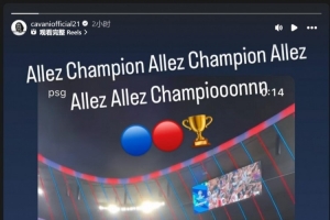 前巴黎圣日耳曼球員卡瓦尼,在賽后更新社媒,貼出巴黎今天奪冠后慶祝的視頻,并寫道:“加油,冠軍!加油,巴黎圣日耳曼??!”