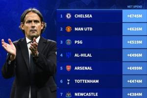 而反觀(guān)巴黎,他們?cè)谙嗤瑫r(shí)期的凈支出高達(dá)5.19億歐,僅次于切爾西和曼聯(lián),高達(dá)全球第3。