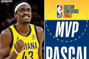 體育資訊6月2日訊 東部決賽步行者4-2淘汰尼克斯。西亞卡姆(喀麥?。┊?dāng)選東決MVP。