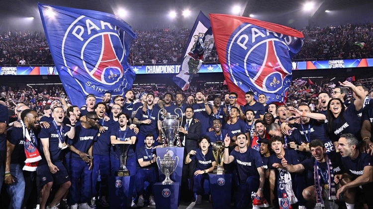 體育資訊06月02日訊 奪得歐冠冠軍后,巴黎在王子公園球場舉行奪冠慶典,展示四座冠軍獎杯(歐冠+法甲+法國杯+法超杯)。