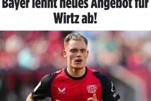 體育資訊06月02日訊 德媒《圖片報(bào)》確認(rèn),勒沃庫(kù)森拒絕了利物浦對(duì)維爾茨的第二份報(bào)價(jià),總價(jià)1.3億歐元!