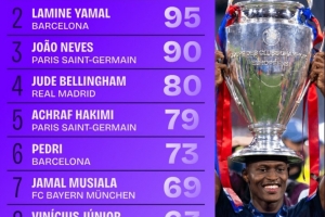 體育資訊6月2日訊 2024-25賽季的歐冠已經(jīng)落下帷幕,巴黎圣日耳曼以5-0的比分大勝國(guó)米奪冠。Squawka統(tǒng)計(jì)出了歐冠多項(xiàng)數(shù)據(jù)排名情況,努諾-門德斯以98次位居地面對(duì)抗榜榜首。