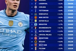 體育資訊6月2日訊 德轉(zhuǎn)不久前更新了英超球員身價(jià),并盤點(diǎn)了目前英超身價(jià)榜(本賽季20支球隊(duì)),以及各支球隊(duì)身價(jià)變化情況,具體如下: