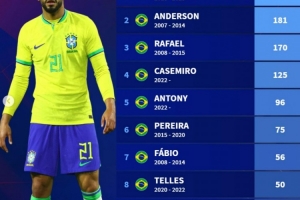 體育資訊6月2日訊 庫尼亞正式加盟曼聯(lián),這名巴西射手在球隊(duì)前景令人期待,德轉(zhuǎn)也盤點(diǎn)了曼聯(lián)隊(duì)史出場(chǎng)次數(shù)最多的巴西球員榜單,具體如下:
