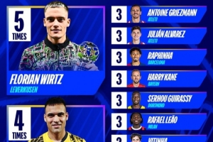 體育資訊6月2日訊 本賽季歐冠戰(zhàn)罷,據(jù)官方統(tǒng)計(jì),維爾茨是獲單場(chǎng)最佳次數(shù)最多的球員,共計(jì)5次。