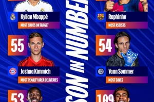 體育資訊6月3日訊 隨著大巴黎問(wèn)鼎大耳朵杯,2024/25賽季歐冠已落下帷幕。歐冠官方統(tǒng)計(jì)了球員各項(xiàng)數(shù)據(jù)之最,其中109次成功突破的亞馬爾成為過(guò)人王,姆巴佩射中球門27次最高。
