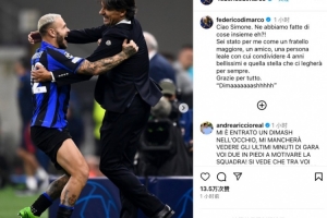 在小因扎吉的離任官宣后,國(guó)米后衛(wèi)迪馬爾科在社媒與小因扎吉告別,他曬出了多張兩人相擁慶祝勝利的照片,并配文寫(xiě)道: