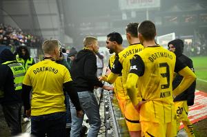 據(jù)魯爾新聞報(bào)道,賽后幾位球迷群體的領(lǐng)袖翻過(guò)圍欄進(jìn)入球場(chǎng),并招呼球員來(lái)到他們身邊。施洛特貝克是第一個(gè)與球迷對(duì)話的多特球員,隨后埃姆雷-詹、安東和吉拉西也與球迷進(jìn)行了交流,但大多數(shù)多特球員都保持距離站著不動(dòng)。