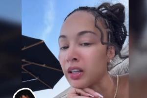 Draya發(fā)視頻吐槽:“我男友發(fā)現(xiàn)了一首新歌,但并不是,這是2000年左右的歌了,是2013年?還是2012年的?他很喜歡《Chopped N Skrewed》(歌手是T-Pain)?!?/p>