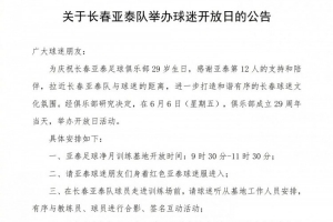 6月6日,長春亞泰足球俱樂部將迎來29歲生日。為了感謝亞泰第12人的不離不棄,俱樂部決定在生日當(dāng)天舉辦開放日活動,邀請廣大球迷和媒體朋友走進(jìn)亞泰凈月基地觀看亞泰將士的訓(xùn)練。雖然這是主教練蘇亞雷斯的第一堂“公開課”,但由于保級任務(wù)較重,球隊只能對外開放訓(xùn)練課的前15分鐘。