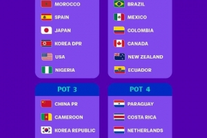 2025年國際足聯(lián)U17女足世界杯將于2025年10月至11月在摩洛哥舉行,屆時(shí)將有24隊(duì)參賽,目前24隊(duì)分檔如下: