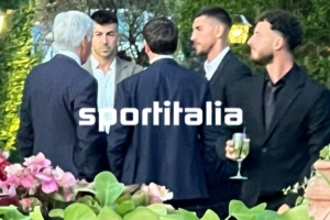 婚禮儀式結(jié)束后,賓客移步至圣喬治莊園。記者捕捉到關(guān)鍵畫面,加斯佩里尼與兩位羅馬球員長談,這張合影成為他即將執(zhí)掌紅狼帥印的首次非正式會(huì)晤見證。