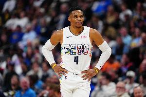 據(jù)統(tǒng)計,本賽季當(dāng)威少首發(fā)時,掘金戰(zhàn)績?yōu)?勝1負(fù)。他場均能夠拿下14.3分5.7籃板8.4助攻2.6搶斷,投籃命中率52.1%。