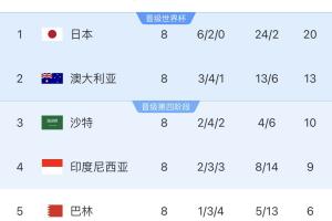 國足凈勝巴林5個(gè),印尼凈負(fù)日本2球,國足、印尼凈勝球均為-8;