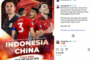 印尼足協(xié)主席托希爾更新社媒,曬出本場比賽的海報,并配文寫道:“回到我們的主場,讓我們?yōu)榧缲?fù)國家榮譽(yù)的印尼隊加油助威吧!希望通過我們的支持,幫助印尼隊今晚取得理想結(jié)果?!?/p>