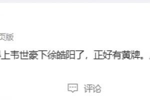 落后了,估計得上韋世豪下徐皓陽了,正好有黃牌。反正平都是大半截入土的,非得贏不可。 ???