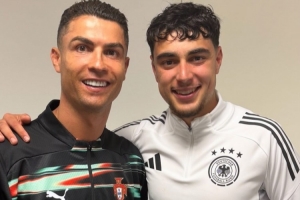 體育資訊6月5日訊 今天凌晨,德國在歐國聯(lián)半決賽1-2不敵葡萄牙遭淘汰,德國國腳帕夫洛維奇得到了與C羅合影的機會。