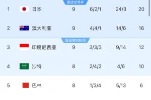 體育資訊06月05日訊 世預賽亞洲區(qū)第三階段C組第9輪,國足0-1不敵印尼,最新積分榜如圖。國足提前1輪出局,無緣2026美加墨世界杯。