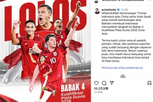印尼足協(xié)主席托希爾在社媒曬出晉級(jí)附加賽的海報(bào),并配文寫(xiě)道:“印尼隊(duì)坐鎮(zhèn)主場(chǎng)擊敗中國(guó)隊(duì),同時(shí)由于本輪沙特客勝巴林,印尼隊(duì)已經(jīng)鎖定了進(jìn)入第四階段比賽的門票?!?/p>