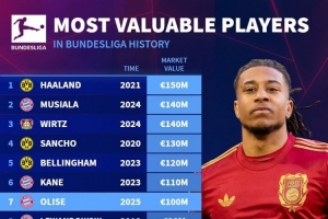 德甲球員德轉(zhuǎn)歷史身價榜: