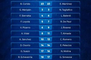 智利首發(fā):23-科爾泰斯、3-馬里潘、4-塞拉爾塔、5-洛約拉、6-維特森-皮薩羅、8-比達爾、10-桑切斯、14-奧索里奧、17-蘇亞佐、18-埃切維里亞、20-盧卡斯-塞佩達