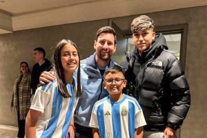 體育資訊6月6日訊 據(jù)阿根廷媒體TYC報道,梅西與比達爾的孩子們見面并合影。