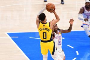 本場最后時刻,步行者后衛(wèi)泰瑞斯-哈利伯頓中距離絕殺雷霆,步行者主場陷入極致的狂歡。