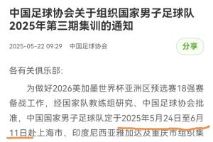 國(guó)足6月5日對(duì)陣印尼,而集訓(xùn)從5月24日就已開(kāi)始