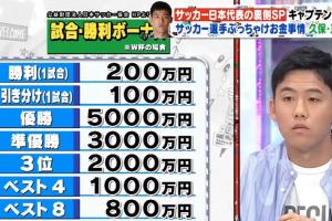 體育資訊06月06日訊 利物浦球員遠(yuǎn)藤航近日回國(guó)參加綜藝節(jié)目,透露了日本國(guó)家隊(duì)的世界杯獎(jiǎng)金相關(guān)情況。
