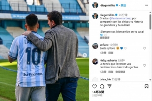 此次陪同勞塔羅一同訪問競技俱樂部的迭戈-米利托(迭戈-米利托也是競技俱樂部的名宿)事后更新社媒寫道:“感謝勞塔羅與小伙子們分享你關(guān)于偉大與謙遜的故事,這里永遠(yuǎn)是你的家,歡迎你!????”