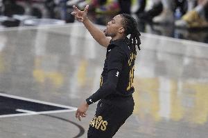 本賽季常規(guī)賽,加蘭出戰(zhàn)75場比賽,場均能得到20.6分2.9籃板6.7助攻1.2搶斷;季后賽他場均18分2.2籃板5.2助攻。