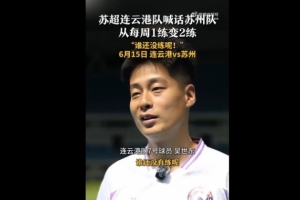 6月15日19:00,“蘇超”第四輪,蘇州隊(duì)將奔赴客場(chǎng)挑戰(zhàn)連云港隊(duì)。此前據(jù)荔枝新聞報(bào)道,由于在蘇超聯(lián)賽戰(zhàn)績(jī)不佳,因此蘇州隊(duì)已經(jīng)從每周1練調(diào)整為了每周2練。