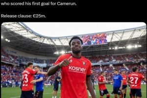 體育資訊6月7日訊 據(jù)知名轉(zhuǎn)會專家羅馬諾報(bào)道,來自英格蘭和西班牙的多支俱樂部正在密切關(guān)注博約莫,他剛剛打進(jìn)自己在喀麥隆國家隊(duì)首粒進(jìn)球。
