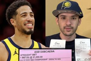 前者的賠率是125倍,后者的賠率是30倍,兩個選項(xiàng)他各買了1000美元,目前已經(jīng)凈賺了30000美元(東部冠軍),如果步行者最終奪得總冠軍,他還能再賺12.5萬美元。