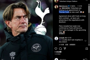 體育資訊6月9日訊 羅馬諾報(bào)道,熱刺接近任命托馬斯-弗蘭克為球隊(duì)新任主帥。